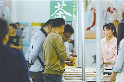 信阳茶叶节上,几位顾客在挑选茶叶。东方IC 供图